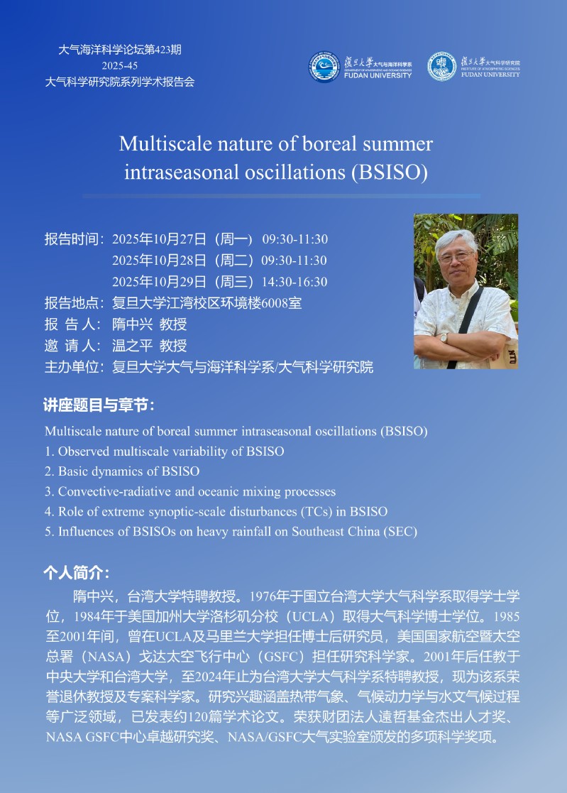 2025/10/27~10/29 - 隋中兴- Multiscale nature of boreal summer intraseasonal oscillations(BSISO)