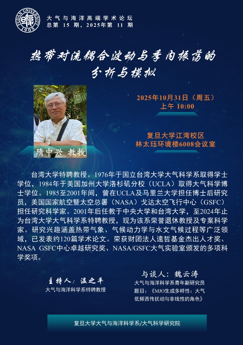 2025/10/31 - 隋中兴 -热带对流耦合波动与季内振荡的分析与模拟